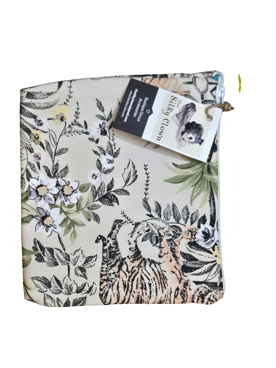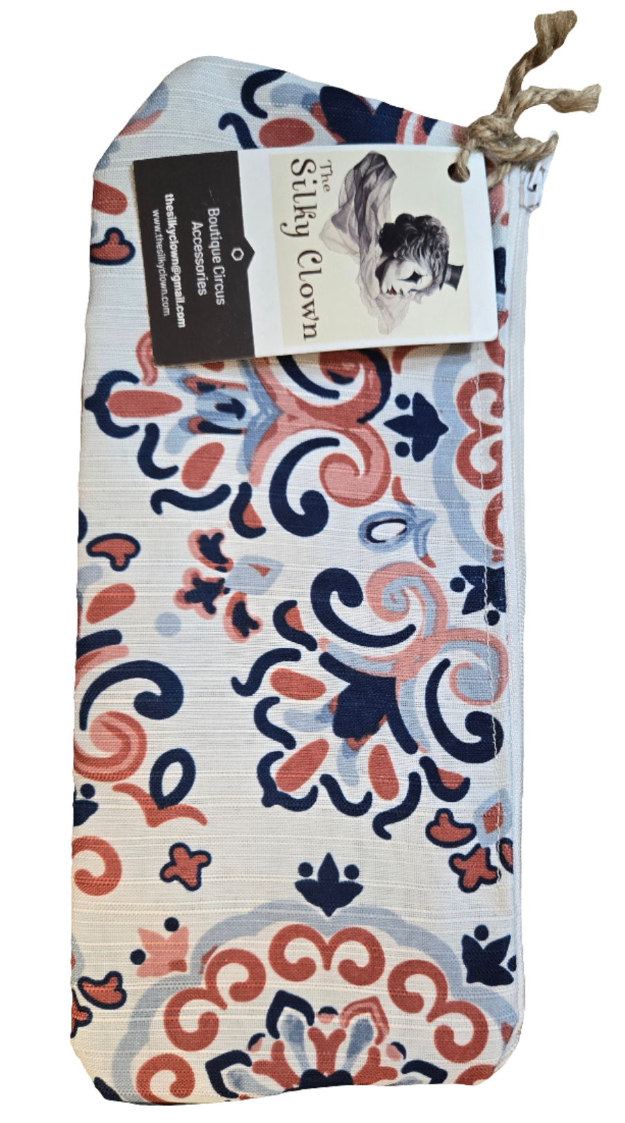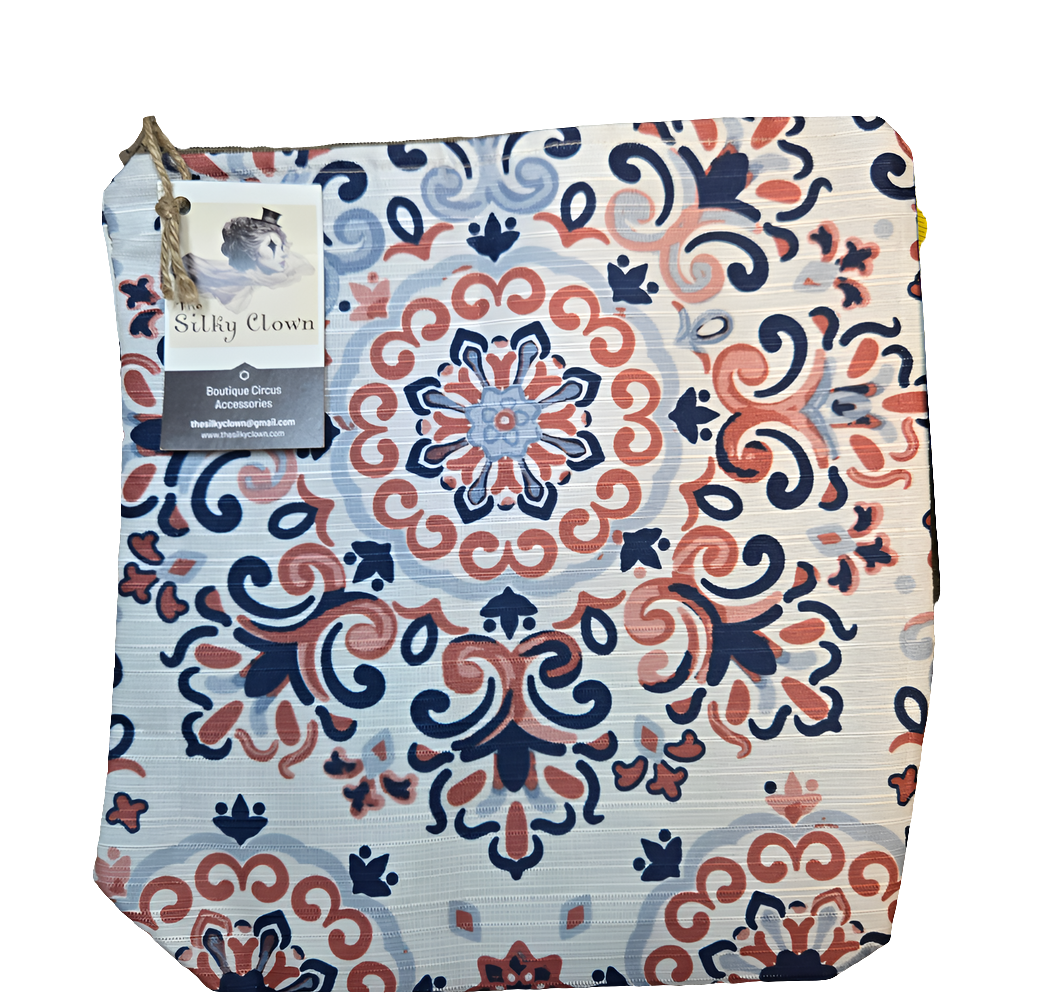 Introducing the ultimate gear companion for juggling enthusiasts—our Handmade Cloth Gear Bag, expertly crafted by the talented Mel Webstar of The Silky Clown! Available in various sizes, this vibrant and stylish bag is perfect for securely storing your palm torches or your favorite smaller sets of chain poi.