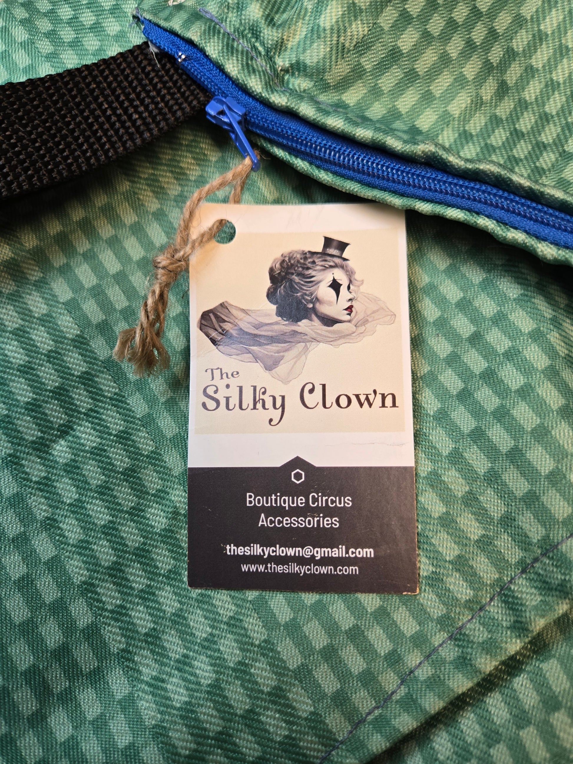 Introducing the perfect companion for juggling enthusiasts—our Handmade Cloth Gear Bag, crafted by Mel Webstar of The Silky Clown! Available in various sizes, these vibrant bags are ideal for securely storing palm torches and smaller chain poi sets.