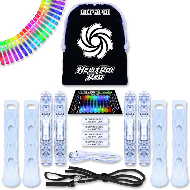 •Everything is Rechargeable: All of the different Helix Poi Pro sets feature Micro USB rechargeable lights so you no longer have to waste time and money on disposable batteries.