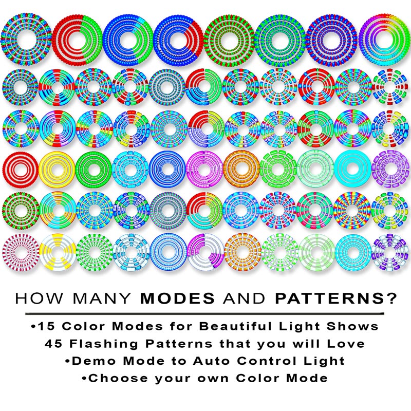 •15 Color Modes & 45 Flash Patterns: Tons of stunning preset/custom color modes are available to explore and they can all have the flash pattern adjusted to add style to your spin.